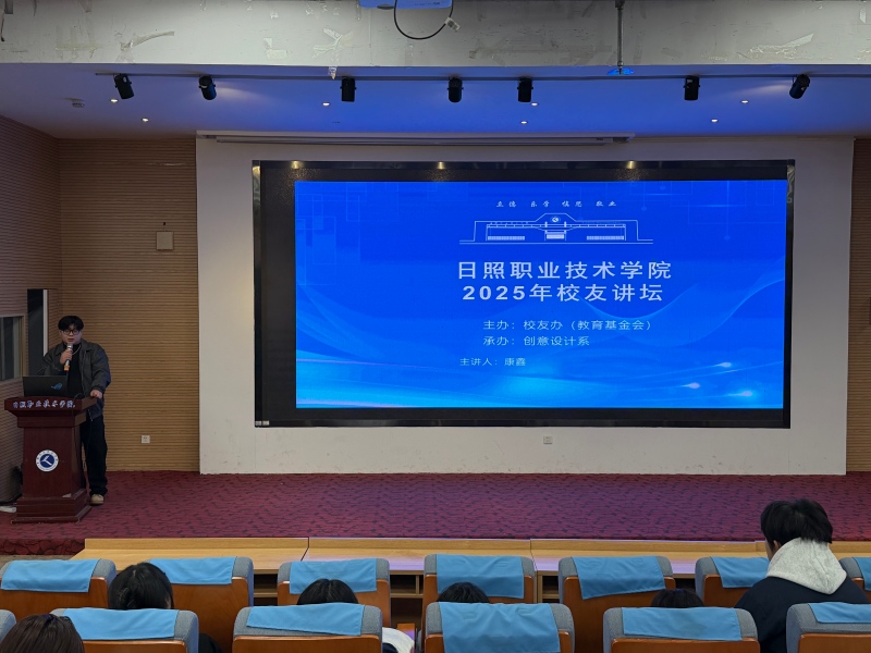为深化校友与母校纽带,发挥杰出校友示范作用,12月18日下午,由校友办主办、创意设计系承办的2025年校友讲坛在地滋楼A区报告厅举行。本期讲坛邀请2021届数字媒体应用技术专业优秀毕业生、日照红匠影视有限公司创始人康鑫担任主讲人,200余名师生到场聆听。
